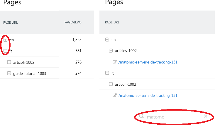Ogni URL viene infatti spezzato in più porzioni, in base agli slash, ad esempio un URL come /it/articoli/guida-matomo sarà spezzato in it, articoli, guida-matomo.