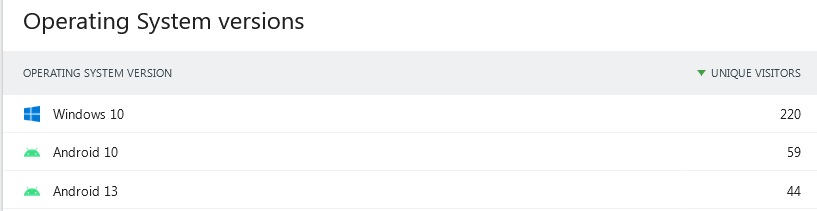 I sistemi operativi e i browser si dividono in più versioni e sottocategorie, ad esempio per Android potremmo vedere le versioni 10, 11, 12 e 13, oppure per il browser Chrome potremmo vedere anche le versioni Chrome Mobile e Chrome Mobile iOS.