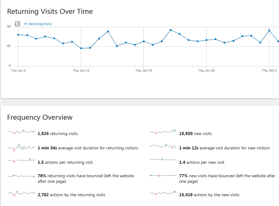 Matomo: Utenti nuovi vs Utenti di ritorno (Impegno)